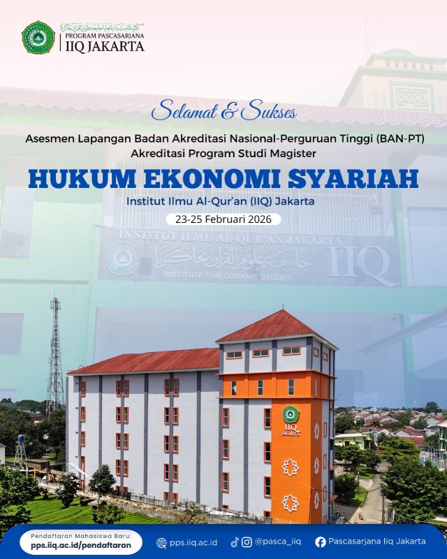 Tangerang Selatan — Program Pascasarjana Institut Ilmu Al-Qur’an (IIQ) Jakarta melaksanakan Asesmen Lapangan (AL) Akreditasi Program Studi Magister Hukum Ekonomi Syariah (HES) pada Senin–Selasa, 23–24 Februari 2026. Kegiatan ini menjadi tahapan penting dalam proses penjaminan mutu pendidikan tinggi yang dilakukan oleh Badan Akreditasi Nasional Perguruan Tinggi (BAN-PT).