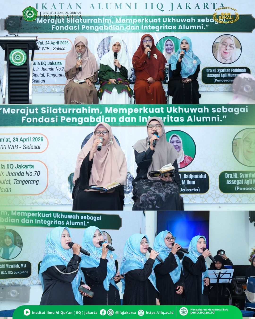 “Kami berharap para alumni terus mendukung kampus, baik dalam akreditasi, menyebarkan informasi positif, maupun mengirimkan putra-putrinya untuk melanjutkan studi di IIQ Jakarta,” tambahnya.